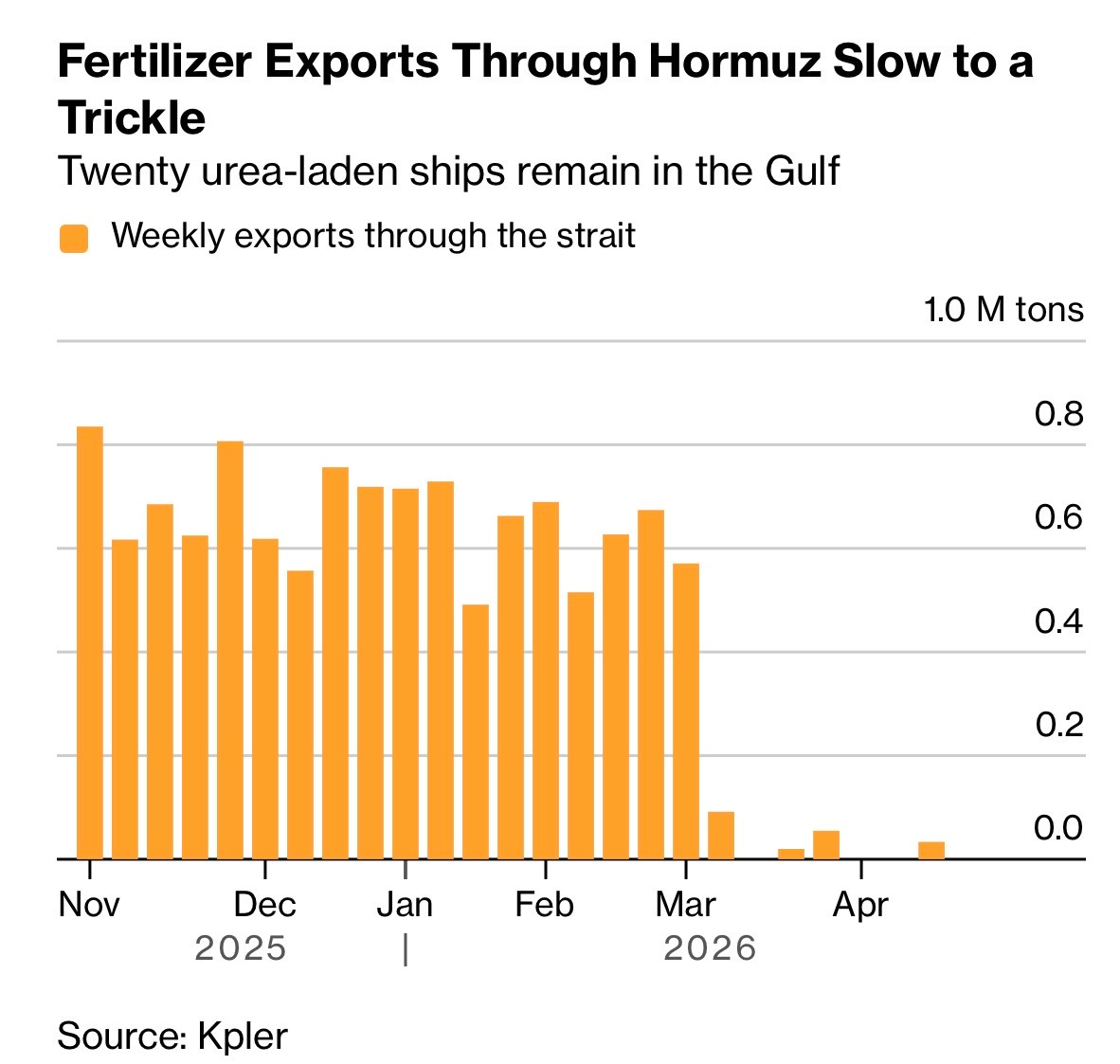 If anything, the inflation picture could get worse as gas prices top a national average of $4.00 per gallon while President Trump looks set to extend the U.S. blockade of the Strait of Hormuz in order to extract concessions from Iran on a potential peace deal. The blockade means that tanker traffic through the Strait will remain limited, cutting off 20% of the world’s daily oil product consumption. But the impact extends beyond energy markets, with the Middle East accounting for around 45% of urea production used in nitrogen-based farm fertilizers. Tanker traffic carrying fertilizer has ground to a halt as well (chart below), which could place upward pressure on food prices from higher fertilizer costs as well as the impact on crop yields from fertilizer shortages.