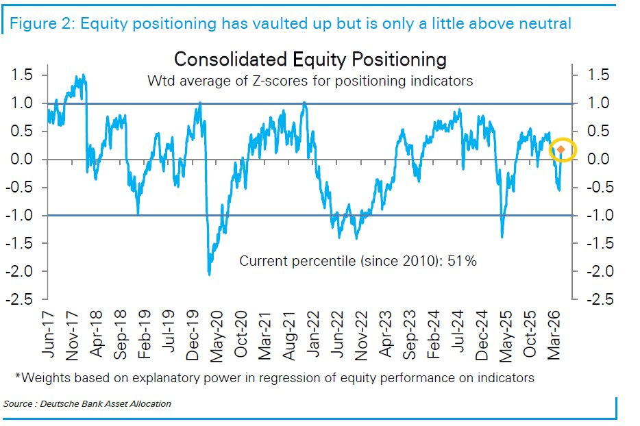 A rally in the S&P 500 that took the index to record territory over the 7,000 level is also one of the strongest 10-day gains in history. The 9.8% rally in the S&P over 10 days to mid-April ranked among the 20 strongest ever. Extremely bearish positioning by institutional funds such as CTA’s and risk-parity strategies likely played a significant role in the gains since the end of March, with one estimate pegging a recent five-day equity purchase at $86 billion for CTAs which would rank as one of the largest buy programs in history. The unwind of bearish positions has run its course, with overall estimates of positioning now running near neutral levels (chart below).