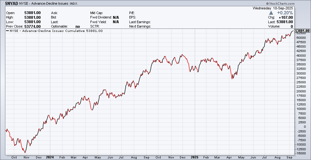 The combination of improving leading indicators, ongoing loose financial conditions, and strong market breadth that includes participation by cyclical industries favors an ongoing economic expansion in my opinion. That supports the earnings outlook which is ultimately good for stock prices at the same time the Fed is set to resume rate cuts. That could make for an excellent trading environment into next year.
