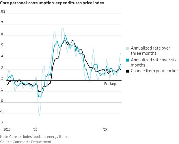 While headlines coming out of the Middle East are capturing investor attention, a pair of consumer inflation reports released last week continues showing upward pressure on prices. The CPI for the month of March came in at 3.3% compared to last year, which was the biggest jump since early 2024. The Fed’s preferred measure is the Personal Consumption Expenditures (PCE) price index, which was released for the month of February. The core figure that removes food and energy prices increased 3.0% year-over-year, while more recent annualized rates over the past three- and six-months are accelerating higher (chart below). That shows inflation pressures outside of what’s expected following war in the Middle East and impact on energy prices.