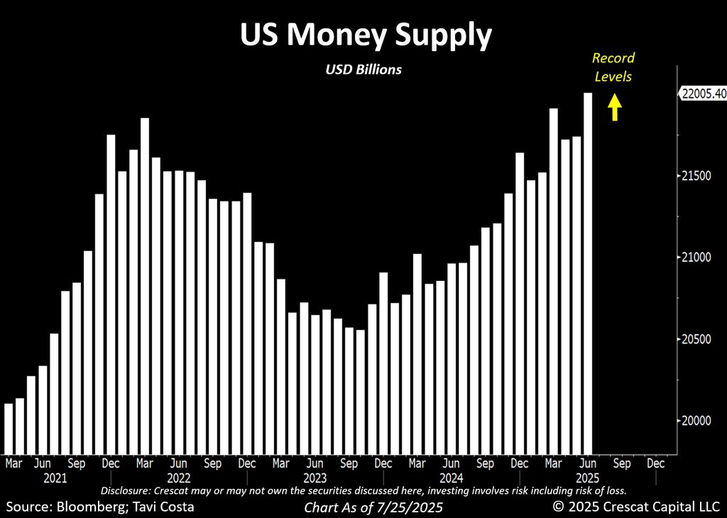 Other factors are supporting the risk-on move across the capital markets. That includes the liquidity backdrop, where a broad measure of the U.S. money supply rose by 4.5% year-over-year to reach a new record high.