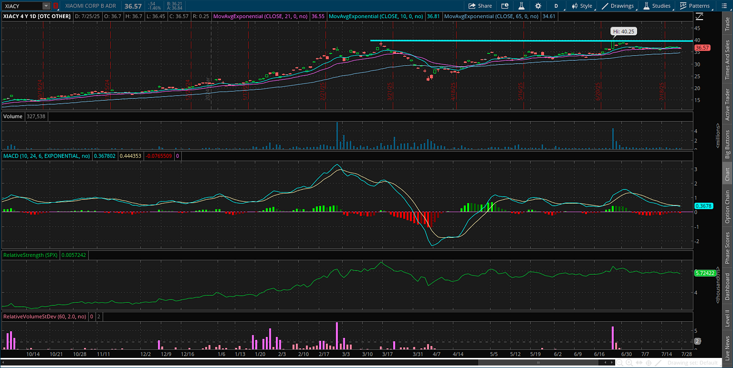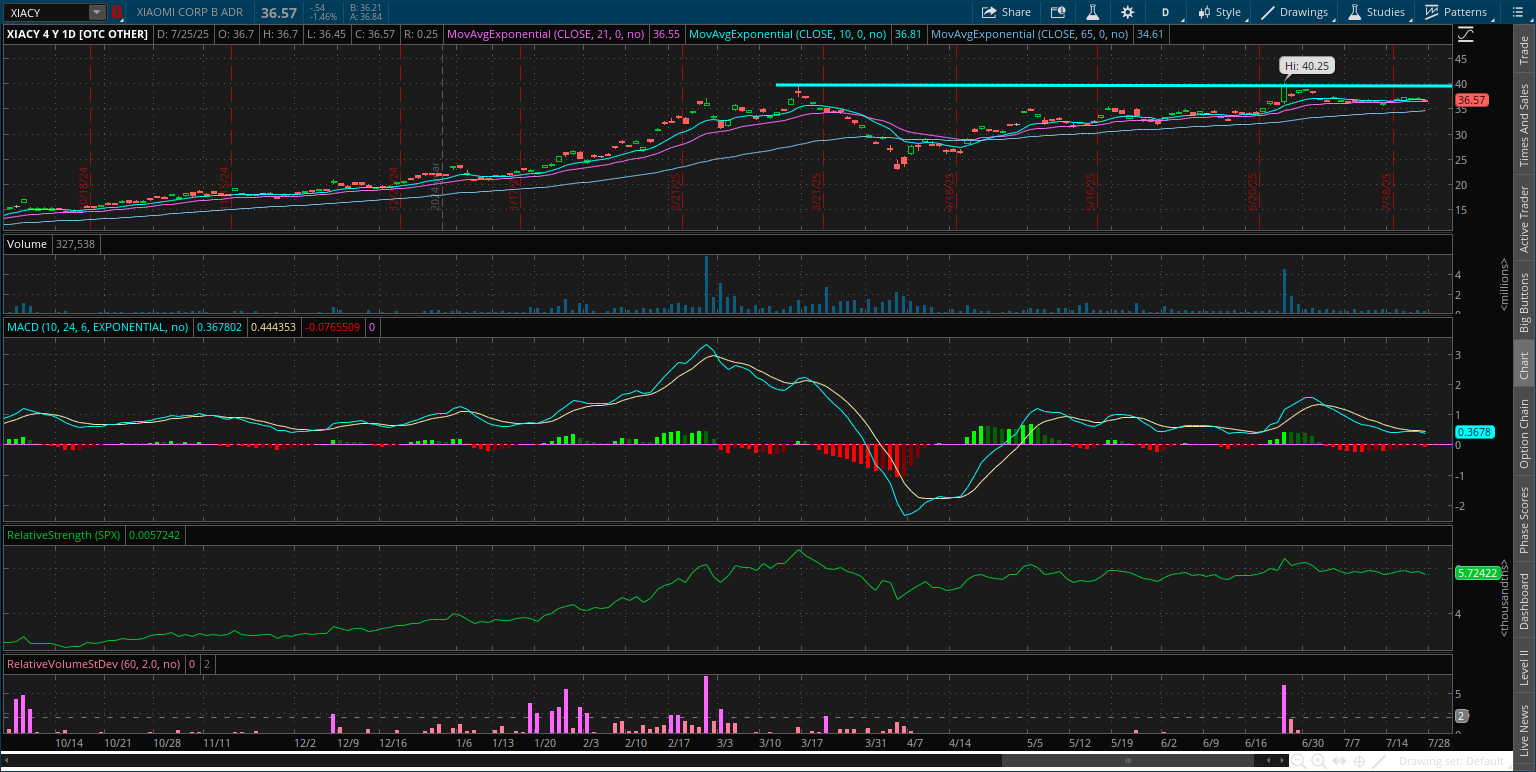 The stock rallied to the $40 level in March and is recently testing that level once again. Pulling back in recent sessions after a large candle failed to breakout. That’s resulting in a smaller pullback and MACD reset. I’m watching for a move over $40.